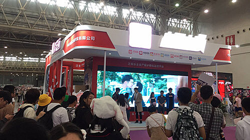 本次展会,omofun动漫作为总冠名方,其展位处于展馆入口最好的位置,一百多平的特装展位在整个展馆最为抢眼。公司旗下《斗破苍穹之大主宰》、《武动乾坤》、《穿越西元3000后》、《妃夕妍雪》、《凤逆天下》、《风起苍岚》等众多知名IP悉数亮相,成为现场瞩目的焦点。